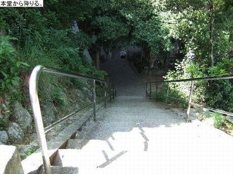 弥谷寺本堂から大師堂へ向けて、この階段を下ります。
