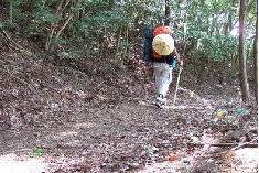 町石道道幅は狭く勾配があります。