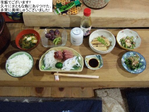 夕食!本日のごちそうです! 久しぶりの「夕食」をいただきます!! こちらに泊まるまでは、まともな食事をしてなかったもので・・ とても美味しく、ご飯もおかわりです! 今でも覚えてますが、ほんとに「うまかったーーぁ!!」 宿のご主人さんから、色々なお話を聞くことができまして、こちらでお世話になることができ、つくづくと良かったなぁ~と思ってます。 ○本日の歩行距離:15 km