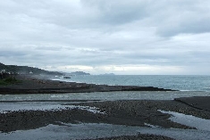 尾崎尾崎海岸です。 サーフスポットです。 サーファーの方が見えます。 今日の宿はこちらです! この海岸の手前に民宿があるのですが、直接宿に行きましたが断られました。 素泊まりということもあるかもしれませんが、私の姿を見るや否や、嫌な顔をされました・・ こう、人相が悪く見えたのかもしれません・・ というわけで、この近辺には他に宿がないので、急遽、こちらの海岸で野宿に決定です!