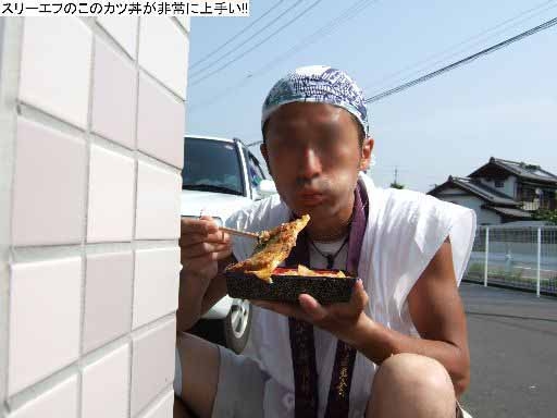 朝食カツ丼を食べてますが、コンビニ弁当にしては美味しいです。 ちょっと驚きです。 食事の時は、袈裟を外しましょう。