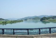 四万十大橋橋の上で記念撮影です。 これから渡ります。