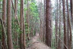 へんろ道巨木の杉の間を通り抜け、山門へ向けて下ります。
