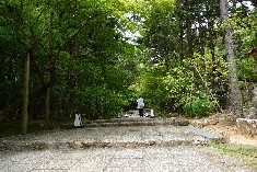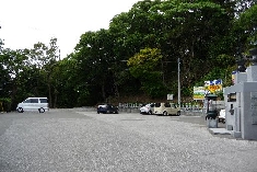 駐車場の写真の鳥居の先の左側の砂利道は通り抜け出来ません。